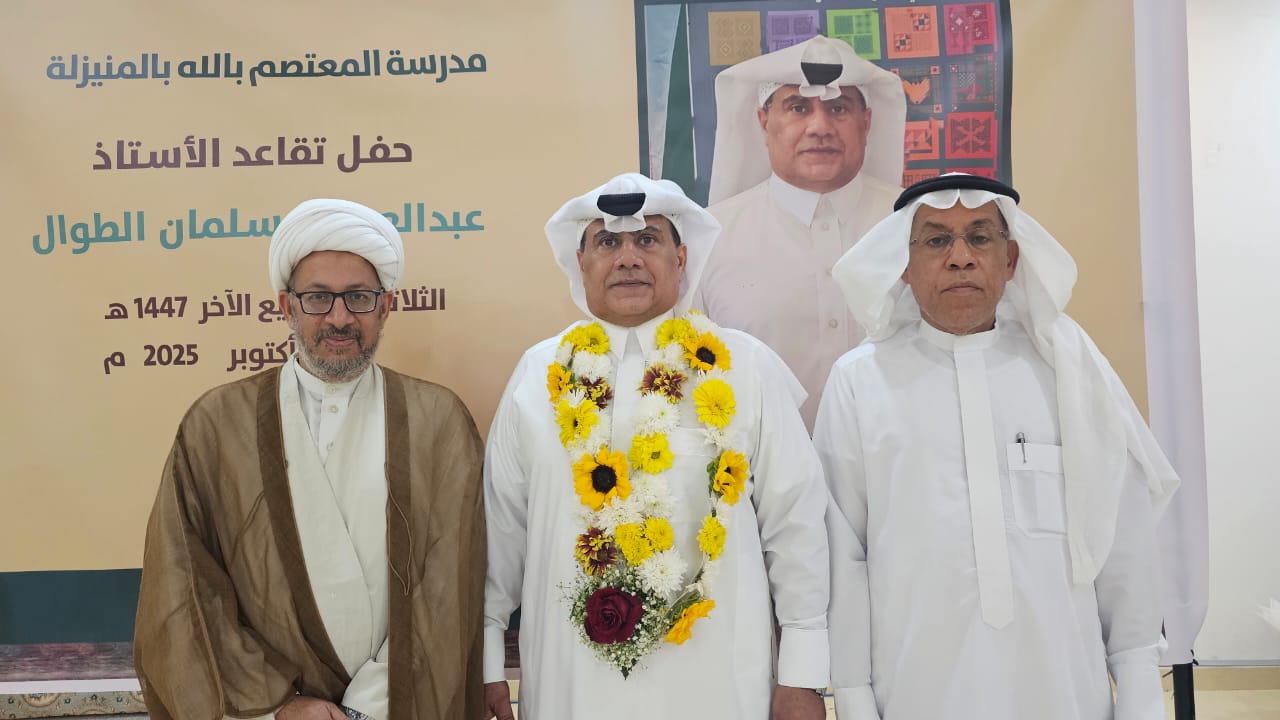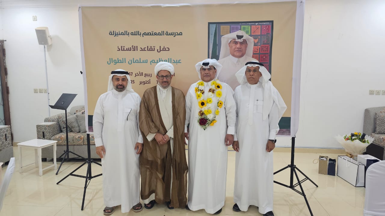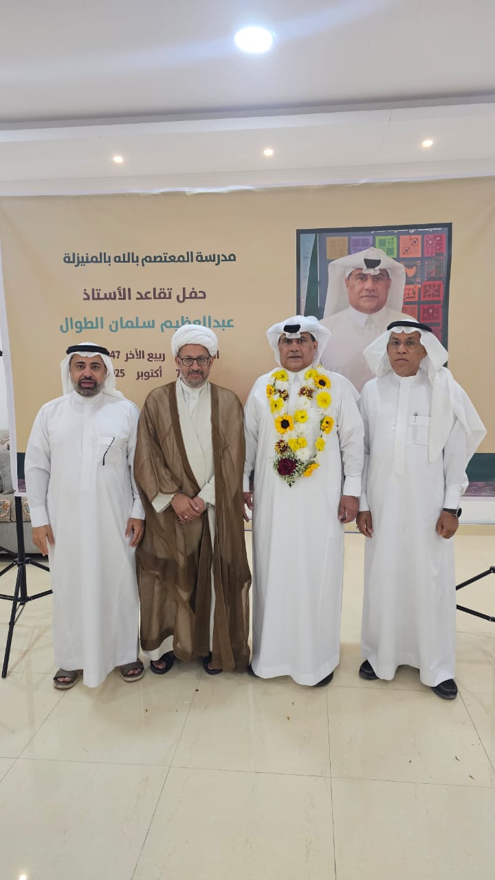 في أجواءٍ من الوفاء والعرفان، أقامت مدرسة المعتصم بالله الابتدائية بالمنيزلة حفلاً لتكريم المعلم عبدالعظيم بن سلمان الطوال، الذي أنهى خدمته بعد ثلاثين عاماً من العطاء المتواصل في ميدان التعليم.