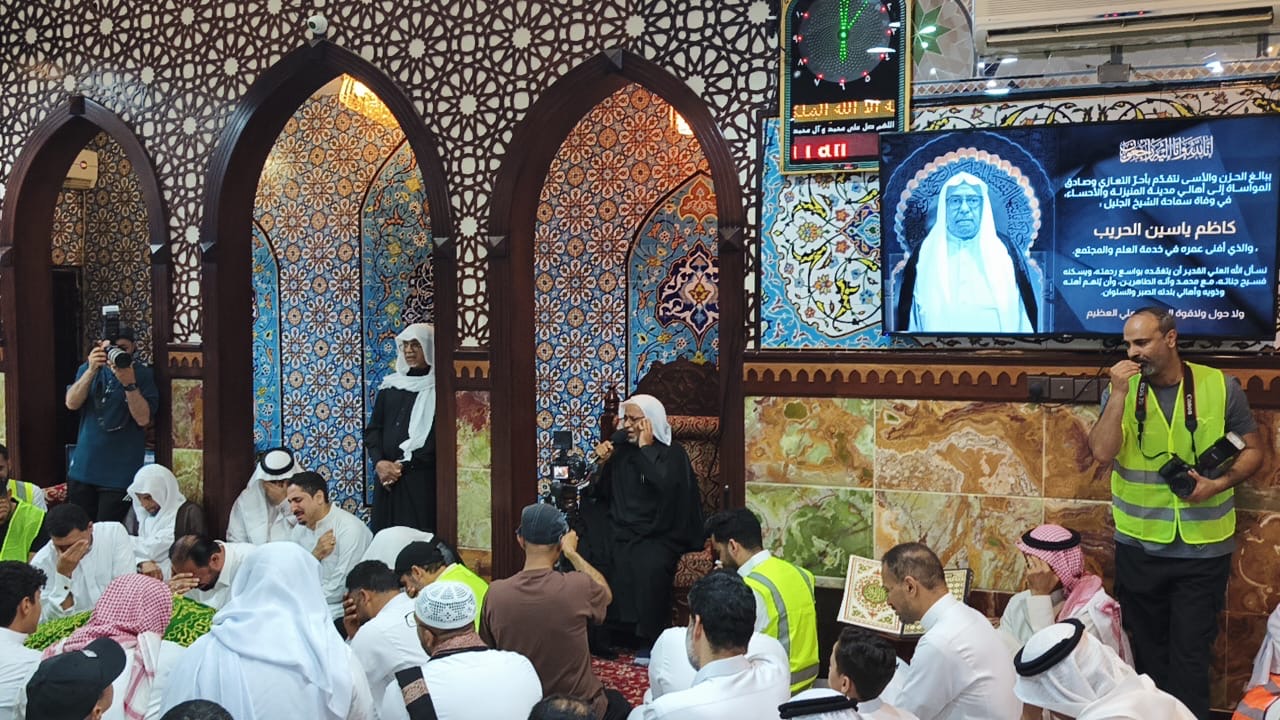ودّعت جموع غفيرة من المؤمنين، وسط حضور علمائي كبير وأجواء مفعمة بالحزن والدموع، المربي الفاضل سماحة العلامة الشيخ كاظم بن ياسين الحريب، الذي شيع إلى مثواه الأخير مساء أمس الخميس، ليلة الجمعة، في المقبرة الجنوبية ببلدة المنيزلة، في مشهد مهيب شهدته آلاف من أبناء البلدة ومحافظة الأحساء، يتقدمهم العلماء والخطباء ووجهاء المجتمع وطلبة العلوم الدينية.