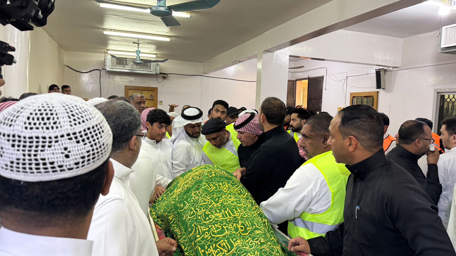 بعد الانتهاء من تغسيل الجثمان الطاهر، القت الكوادر العاملة والمتطوعة في لجنة التشييع والعزاء، نظرة الوداع على جثمان الفقيد في صالة مغتسل مقبرة المنيزلة، في مشهد مليء بالحزن، والبكاء، ولوعة ألم الفقد.