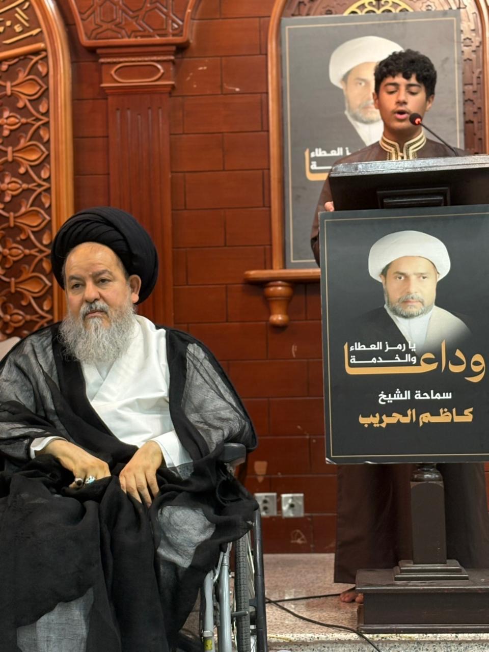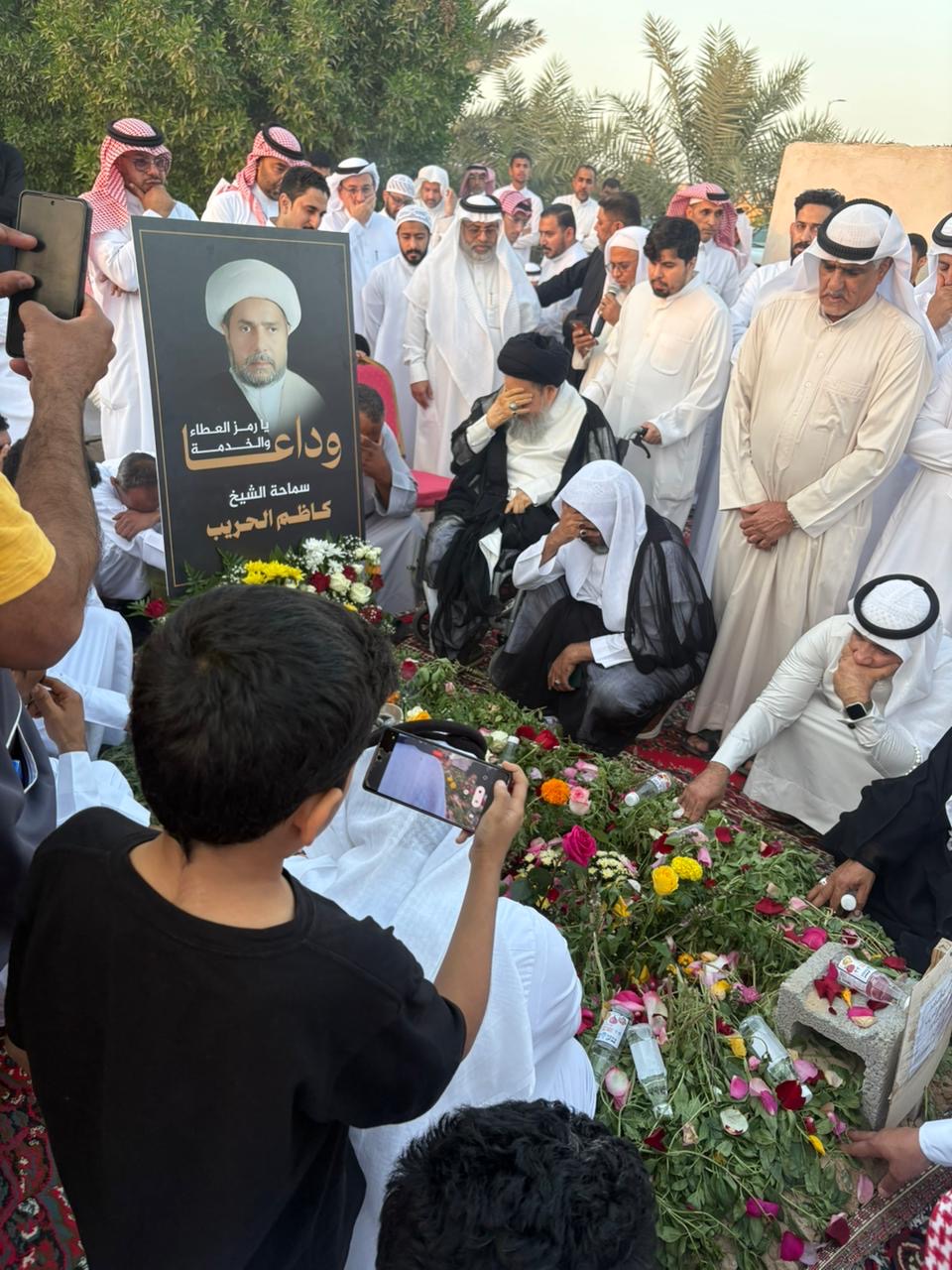 ألقى حجة الإسلام والمسلمين سماحة العلامة السيد عبدالله الموسوي في جامع الإمام القائم (عج) بالمبرز، كلمةً تأبينية مؤثرة في تأبين الفقيد والمربي الفاضل، رجل العطاء والخدمة، سماحة الشيخ العلامة كاظم بن ياسين الحريب، الذي ارتحل إلى جوار ربه يوم الأربعاء، وشُيّع إلى مثواه الأخير يوم الخميس في مشهدٍ مهيبٍ حضره آلاف المشيعين من أهالي المنيزلة والأحساء، يتقدّمهم العلماء وطلبة العلم ووجهاء المجتمع.