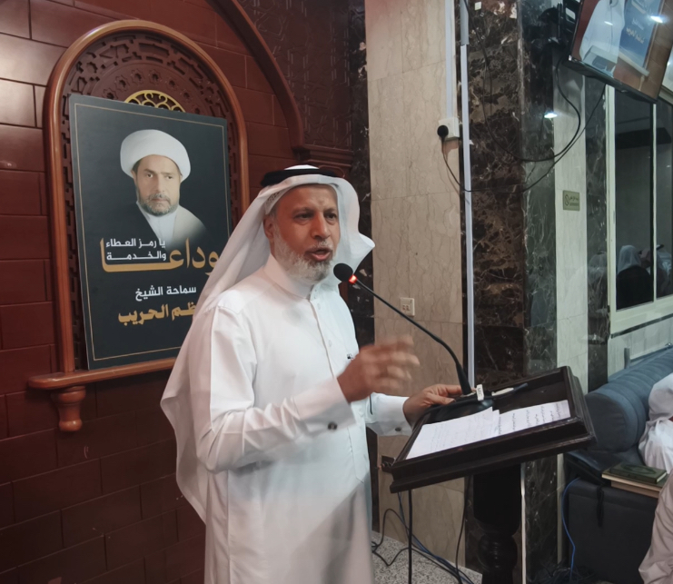ألقى المرشد الأسري الأستاذ علي العباد كلمة مؤثرة خلال أيام عزاء سماحة الشيخ العلامة كاظم بن ياسين الحريب (رحمه الله) في حسينية آل البيت بالمنيزلة، عبّر فيها عن عمق الحزن والأسى لرحيل أحد أبرز رموز الإصلاح الاجتماعي في المنطقة.