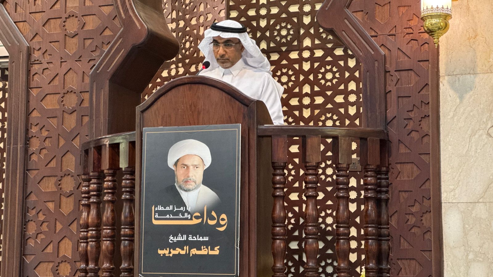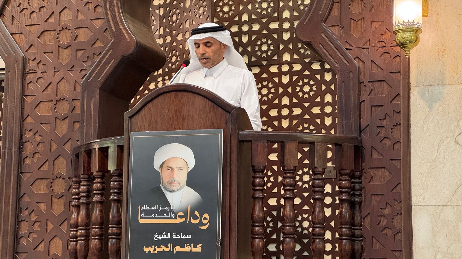 وفي كلمة نيابة عن إدارة الجامع، تحدث الحاج أحمد عبدالقادر الدليم عن قرب الشيخ كاظم من تفاصيل الجامع وأهميته في حياته، مشيراً إلى أن الشيخ كان يعامله كبيته الخاص، يعتني به ويخلص له، مؤكداً أن إرثه سيظل شاهداً حياً على محبته الصادقة وخدمته الدؤوبة للمجتمع.