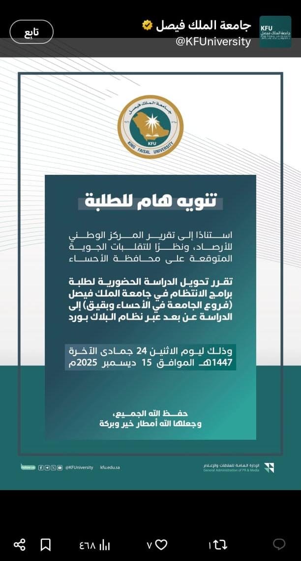 نرحب بكم وبمقترحاتكم على واتساب : 0594002003