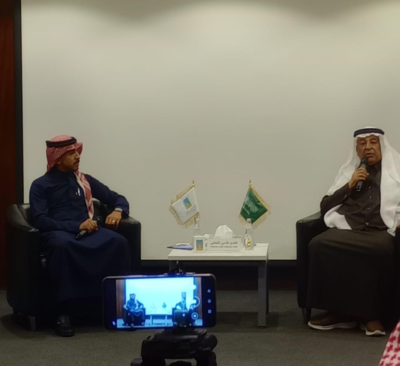 كما أعرب نائب رئيس النادي الأدبي الثقافي الأستاذ حسن الصالح عن شكره للأستاذ جاسم بن أحمد الجاسم على اختياره النادي لاحتضان هذه المناسبة، مؤكدًا أن ذلك يعكس المكانة الثقافية للنادي ودوره الفاعل في تنظيم الفعاليات الفكرية والإعلامية.