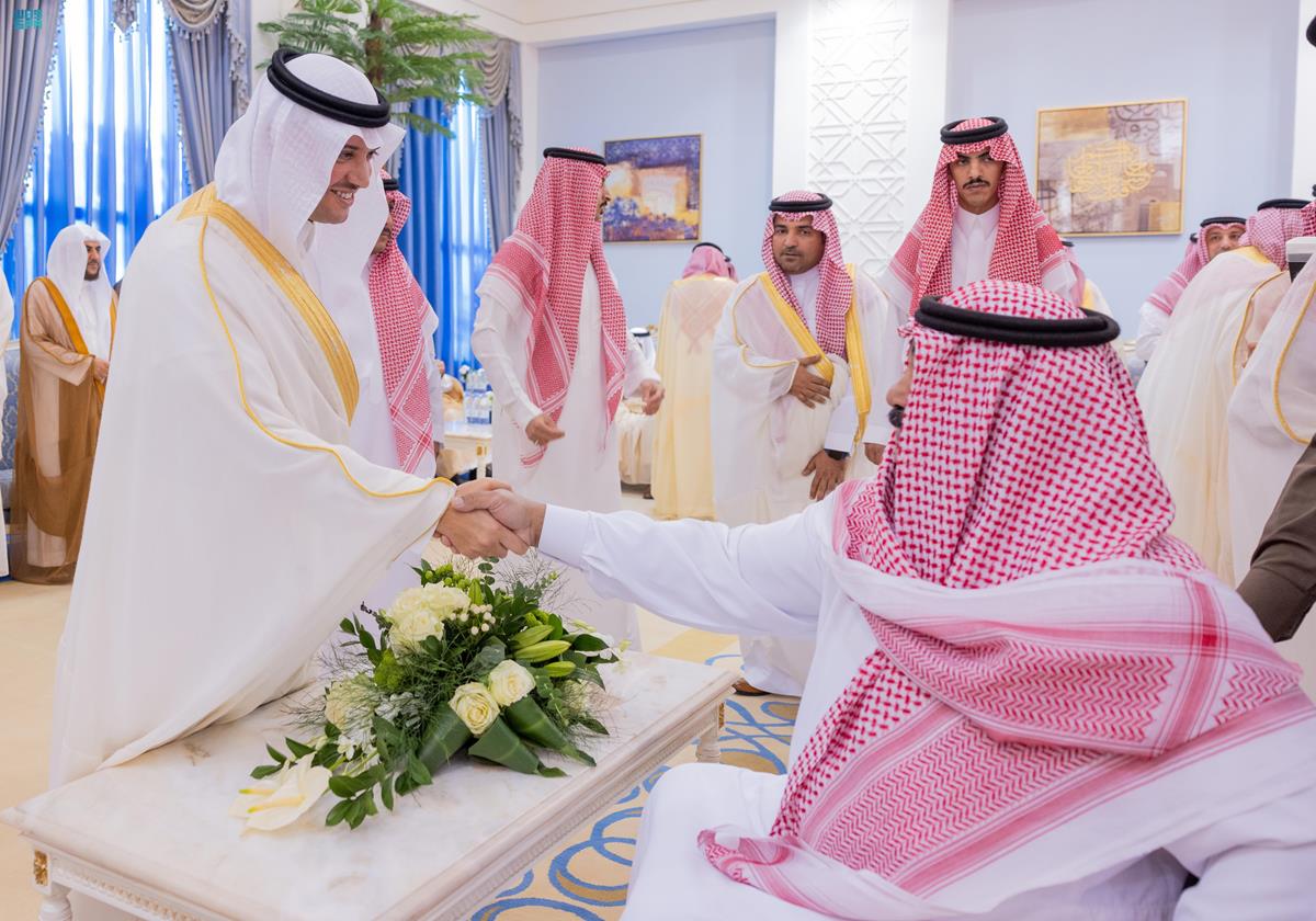 استقبل صاحب السمو الملكي الأمير سعود بن طلال بن بدر محافظ الأحساء ، اليوم ” الجمعة ” ، المهنئين بعيد الفطر من أصحاب الفضيلة والمعالي ومديري الإدارات الحكومية والقطاعات الأمنية والعسكرية وأهالي المحافظة، الذين قدموا للسلام على سموّه وتهنئته بمناسبة حلول عيد الفطر، وذلك في قاعة المناسبات بمقر المحافظة
