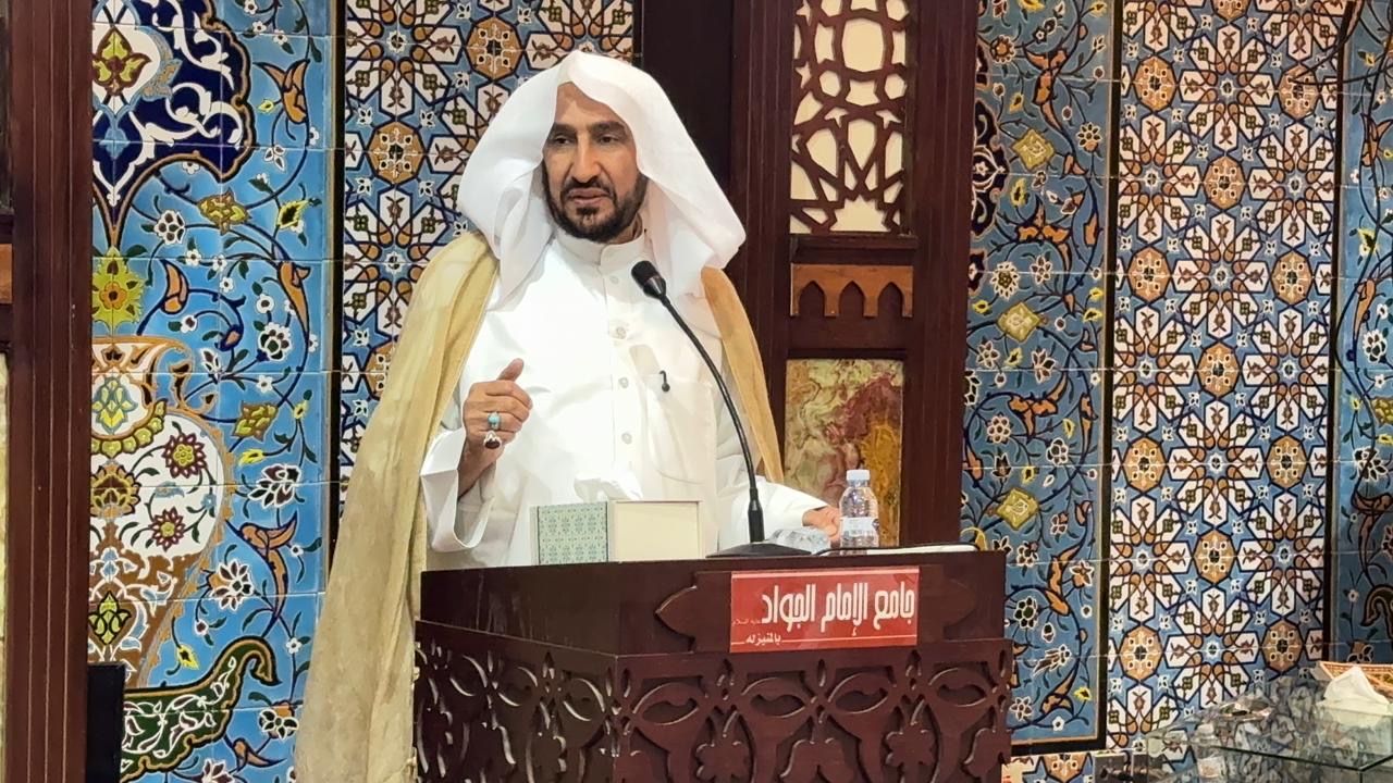 وفي مستهل خطبته، استحضر السيد بو عدنان البعد العقائدي في الانتماء لمدرسة أهل البيت (ع)، متوقفاً عند شخصية الإمام جعفر الصادق (ع) ودوره في ترسيخ معالم الدين، قائلاً:“من منن الله علينا أن نُضاف إلى جعفر بن محمد، فيقال عنا جعفرية، شرف ليس فوقه شرف”، مبيناً أن هذا الانتماء لا يكتمل إلا بالاقتداء العملي والسلوكي.
