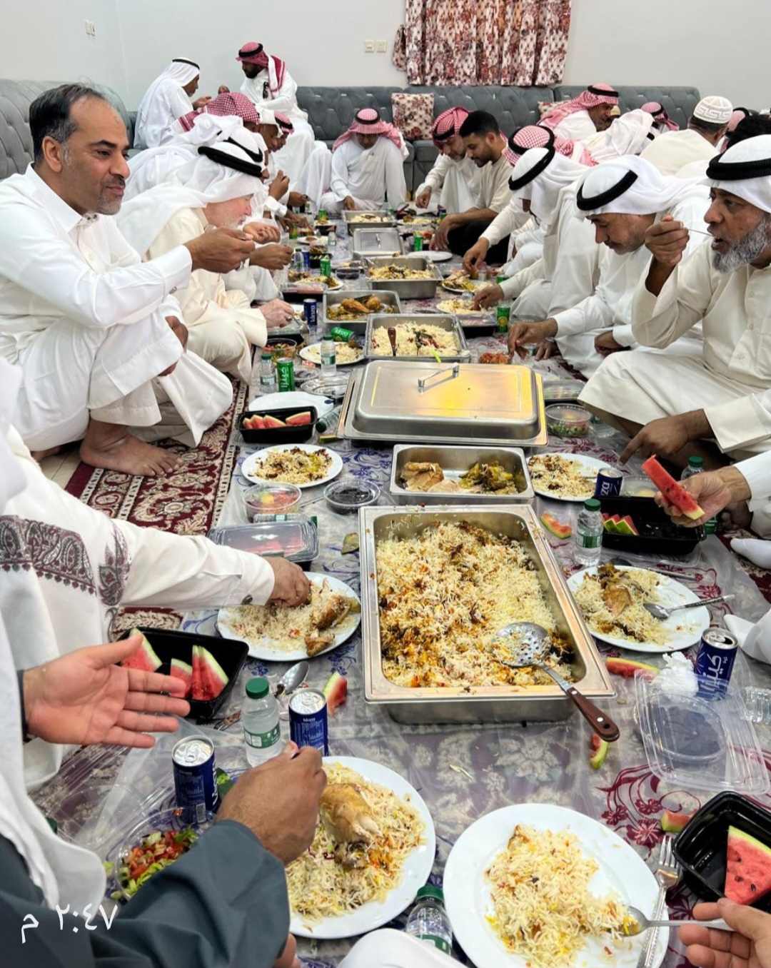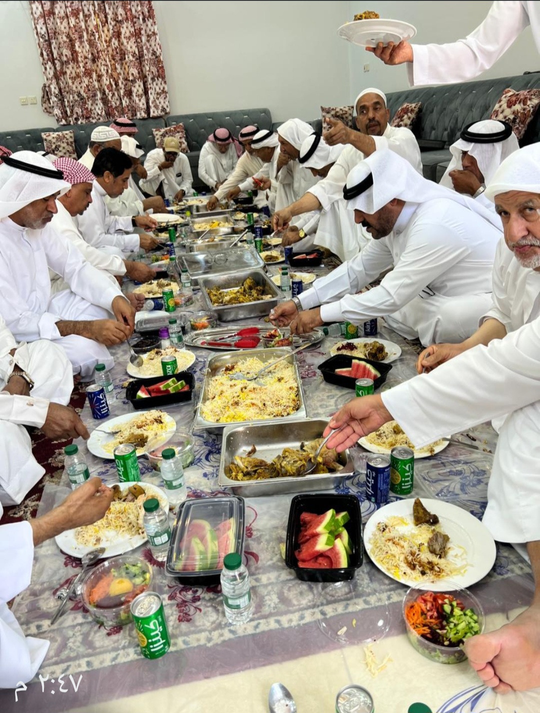 ومع اشتداد حرارة الأجواء، استمتع بعض الأعضاء بفقرة “السباحة” في حوض السباحة، مما أضفى جواً من الحيوية والنشاط على التجمع. وعقب أداء فريضة “الظهرين”، احتفت المجموعة بمناسبة مولد الإمام علي بن موسى الرضا (عليه السلام) من خلال قراءة المولد الشريف، ليُختتم اللقاء بتناول وجبة الغداء التي أُعدت لهذه المناسبة.