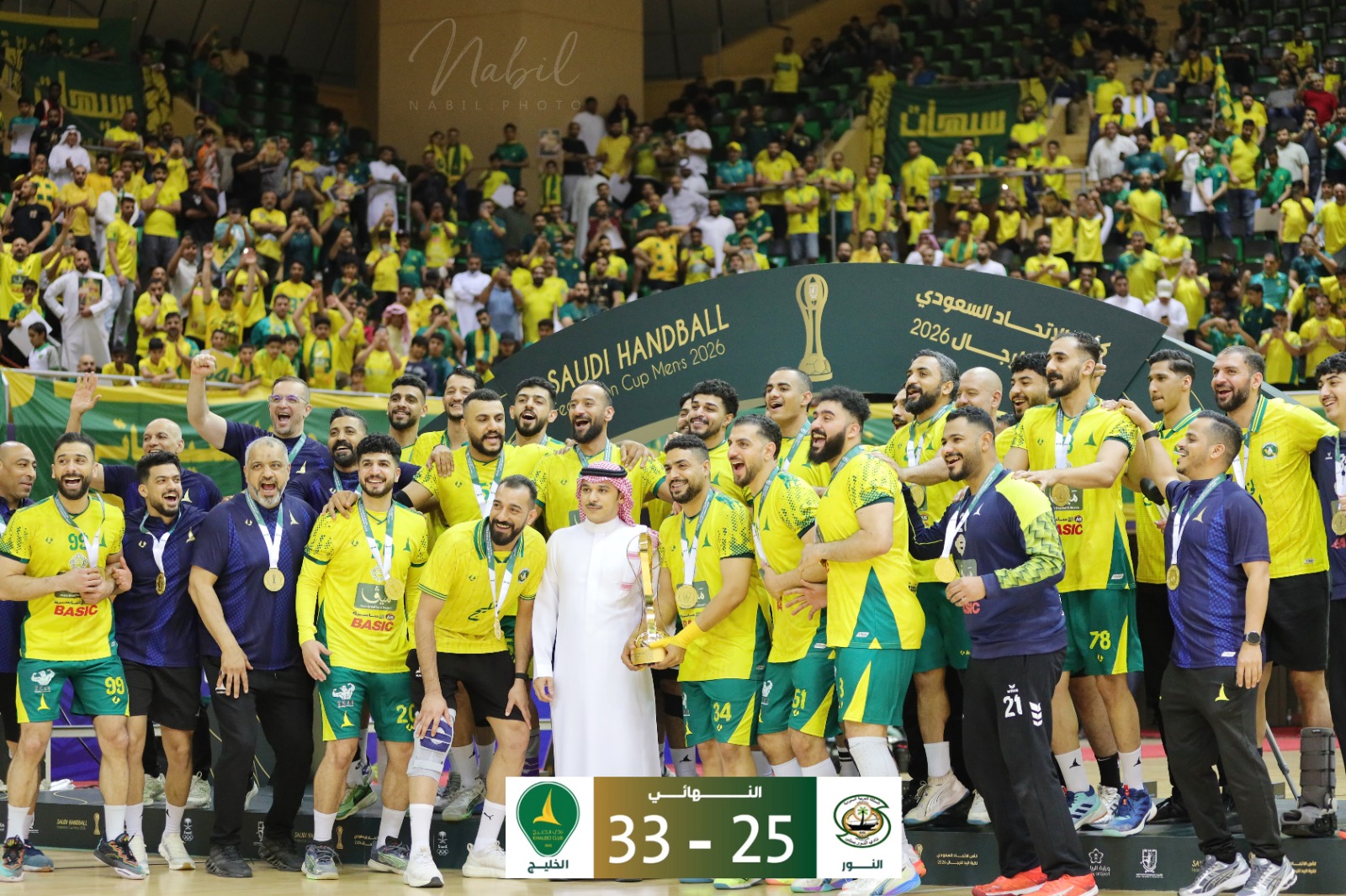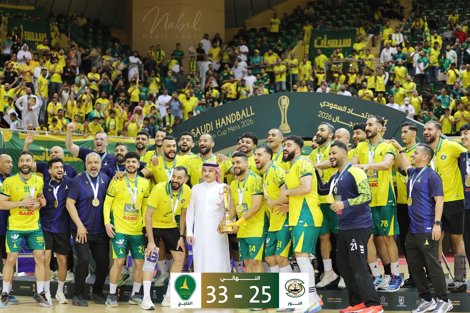 توِّج رئيس مجلس إدارة الاتحاد السعودي لكرة اليد الأستاذ حسن بن نصر هلال، فريق الخليج بلقب النسخة الـ48 من كأس الاتحاد السعودي لكرة اليد للموسم الرياضي 2025–2026م، عقب فوزه في المواجهة الختامية على نظيره النور بنتيجة (33–25)، والتي أقيمت على صالة وزارة الرياضة بالدمام وسط حضور جماهيري كبير.