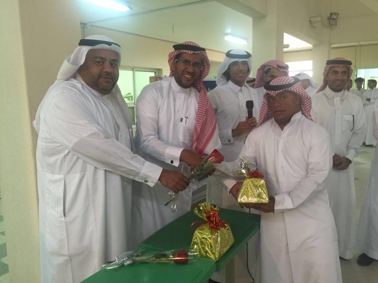 وفي نهاية الحفل ، كرمت المدرسة طلابها ذوو متلازمة داون بحضور وكيل المدرسة الاستاذ عبدالله الريزان وجمع من طلاب المدرسة ومنسوبيها .