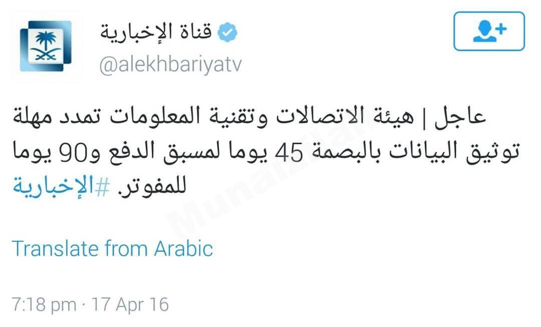 أعلنت هيئة الاتصالات وتقنية المعلومات عن تمديد فترة التحديث والتوثيق بالبصمة لبيانات بطاقات الاتصال مسبق الدفع، وبطاقات البيانات لمدة (45) يوماً إضافية -لجميع عملاء مقدمي الخدمات- وذلك بدءً من يوم غداً على أن تنتهي تلك المهلة بتاريخ 26/08/1437هـ، كما أعلنت الهيئة أيضا عن تمديد فترة تحديث البطاقات (المفوتر)وتوثيقها بالبصمة (90) يوماً تنتهي بتاريخ 23/10/1437هـ. وأوضحت الهيئة في بيانها لها اليوم- أن عدم تحديث البيانات وتوثيقها بالبصمة خلال المهلة المحددة سينتج عنه تعليق بطاقات الاتصال غير المحدثة لمدة أسبوعين، وعند عدم التحديث خلال فترة التعليق يتم فصل الخدمة عن المشترك نهائيا. وقالت الهيئة أن هذا الإجراء يأتي امتداداً لجهودها المستمرة وبالتنسيق مع الجهات المعنية الأخرى في العمل على حماية جميع المشتركين في خدمات الاتصالات وتقنية المعلومات، وحفظ حقوقهم، وعدم استغلال بياناتهم الشخصية، بالإضافة إلى الحد من أي آثار سلبية أو مخالفات على استخدام خدمات الاتصالات بطريقة مخالفة لنظام الاتصالات ولائحته التنفيذية. يذكر أن هيئة الاتصالات وتقنية المعلومات قد وجهت -وفي وقت سابق- جميع مقدمي خدمات الاتصالات في المملكة بتطبيق خدمة التوثيق بالبصمة للمشتركين في خدمات الاتصالات المتنقلة وذلك بدء من تاريخ 11/4/1437هـ الموافق 21/1/2016 م.