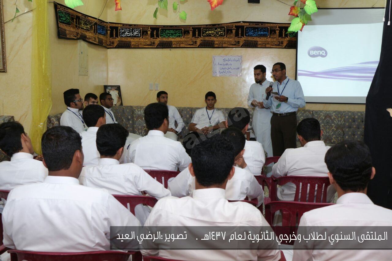 الأستاذ جعفر العيد تحدث عن اختيار التخصص وأهميته والذي سيكون مسار التحول في حياة الشخص، كما تحدث عن أهمية تقديم خدمات اجتماعية في مجال تخصص الفرد، كما تحدث خريج معهد الإدارة أحمد الحسن عن المعهد والتخصصات التي يقدمها لخريجي الثانوية وما بعد البكالوريوس كما تحدث عن الفرص الوظيفية الكبيرة لخريجي معهد الإدارة.