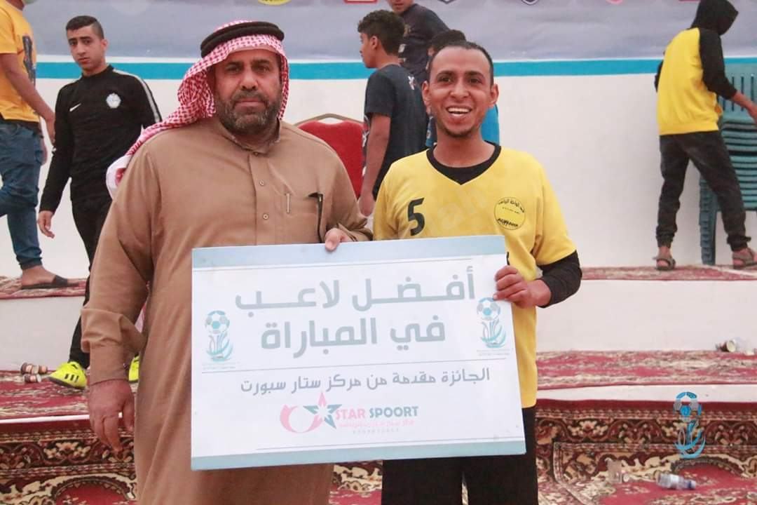 الأستاذ محمد جاسم العطية يسلم جائزة أفضل لاعب من فريق العرين.