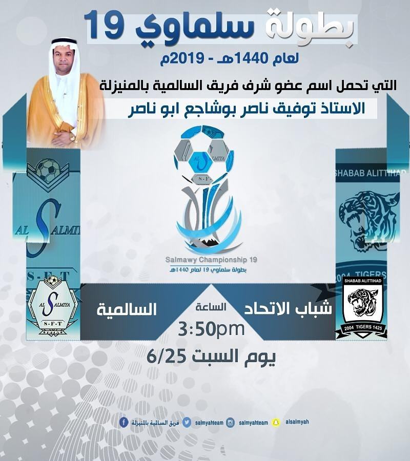 ودع فريق السالمية منظم بطولة سلماوي 19 البطولة بعد تعادله الثالث أمام فريق شباب الاتحاد أمام أنظار كلاً من عمدة المنيزلة الأستاذ خليفة العبدالله وصاحب البطولة الناشط الاجتماعي الأستاذ توفيق أبو شاجع والإعلامي الأستاذ محمد جاسم الرويشد وجمعأ غفير من محبي المستديرة، وبهذا التعادل يودع السالمية البطولة وينجح في التنظيم.