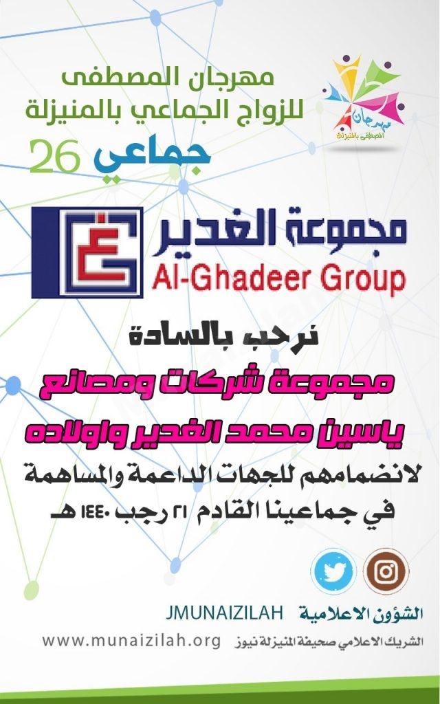 انضم مؤخراً كل من مركز اليحيى للتسوق ومعرض السويلم للإنارة والكهرباء و مجموعة شركات ومصانع ياسين محمد الغدير وأولاده لقائمة شركاء النجاح بمهرجان المصطفى للزواج الجماعي #جماعي26 بعد الاتفاق الذي تم من قبل هذه الجهات ولجنة التسويق على الانضمام إلى قائمة الجهات الداعمة والمساهمة في مهرجان هذا العام.
