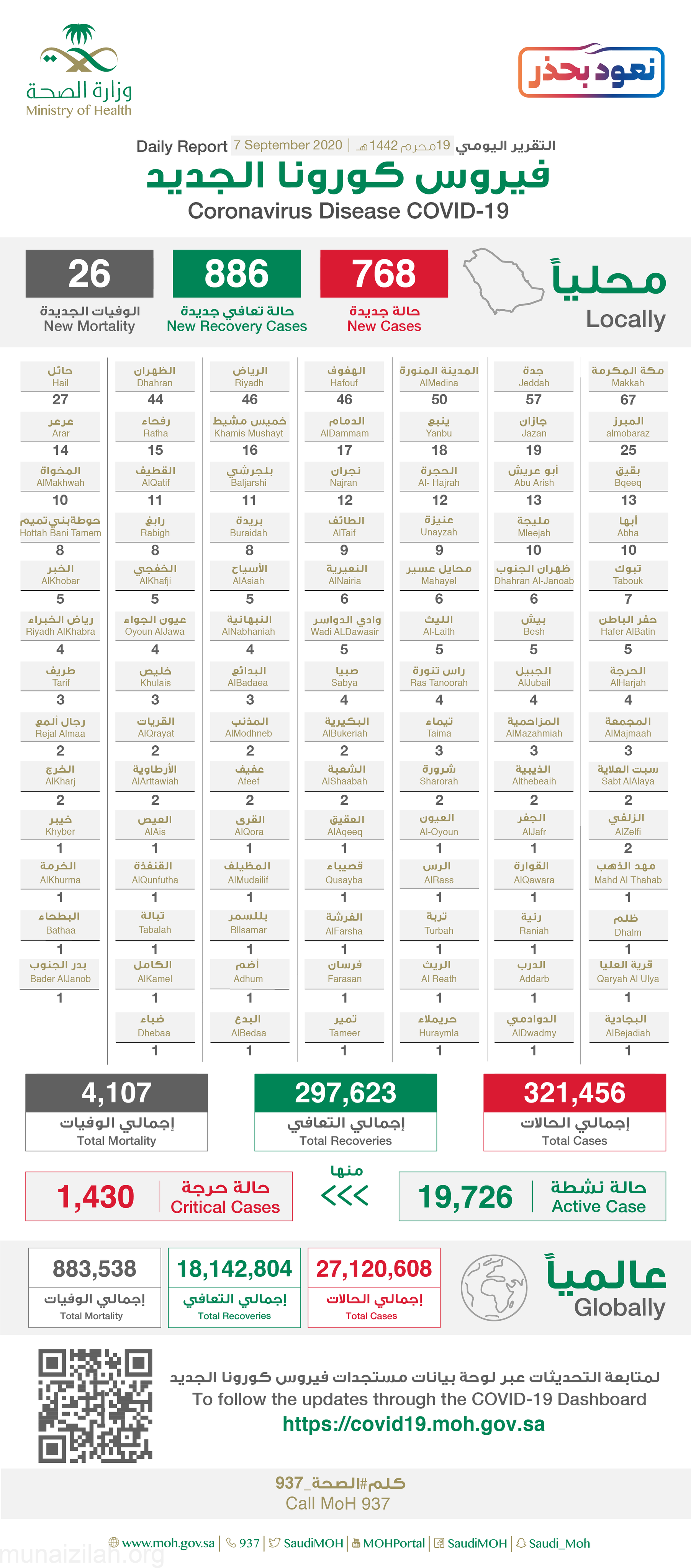و بذلك يصبح مجموع حالات الإصابة منذ انتشار الفيروس في المملكة ( 321456) إصابة.