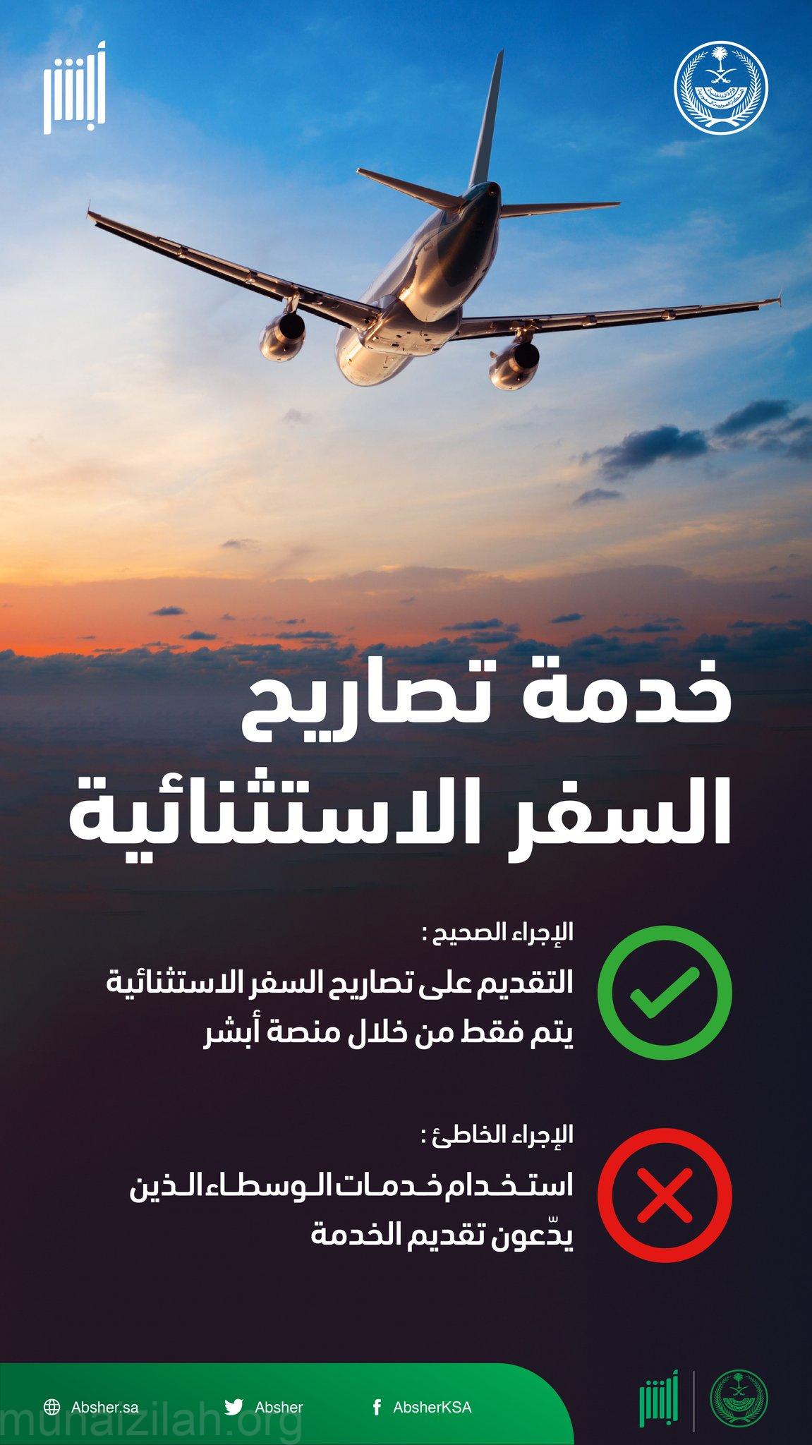 نوهت منصة «أبشر» بأن طلبات التقديم على خدمة تصاريح السفر الاستثنائية لا تتم إلا من خلال المنصة.