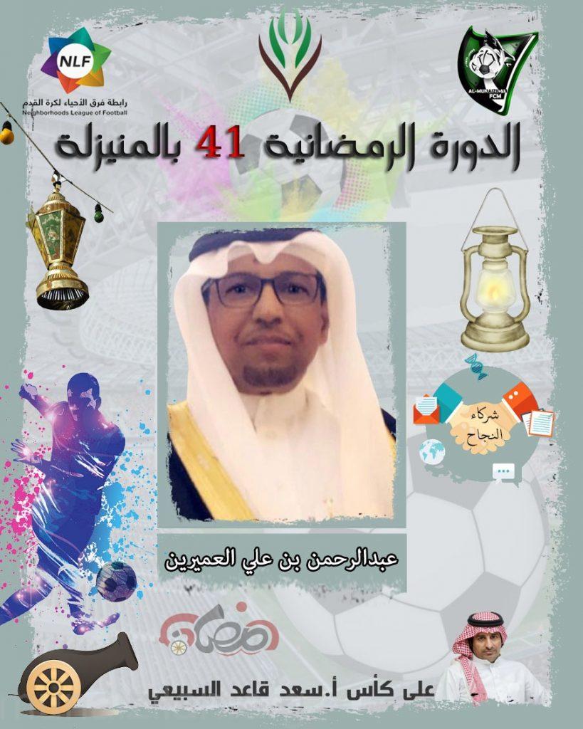 تتقدم إدارة مركز النشاط الاجتماعي بالمنيزلة ممثلة في اللجنة المنظمة والمشرفة على بطولة رمضان السنوية لعامها 41 بكل الشكر والتقدير إلى داعمين البطولة لعطائهم السخي ولوقفتهم الكريمة وبصماتهم الواضحة في دعم مسيرة الحركة الرياضية وهم كلا من :