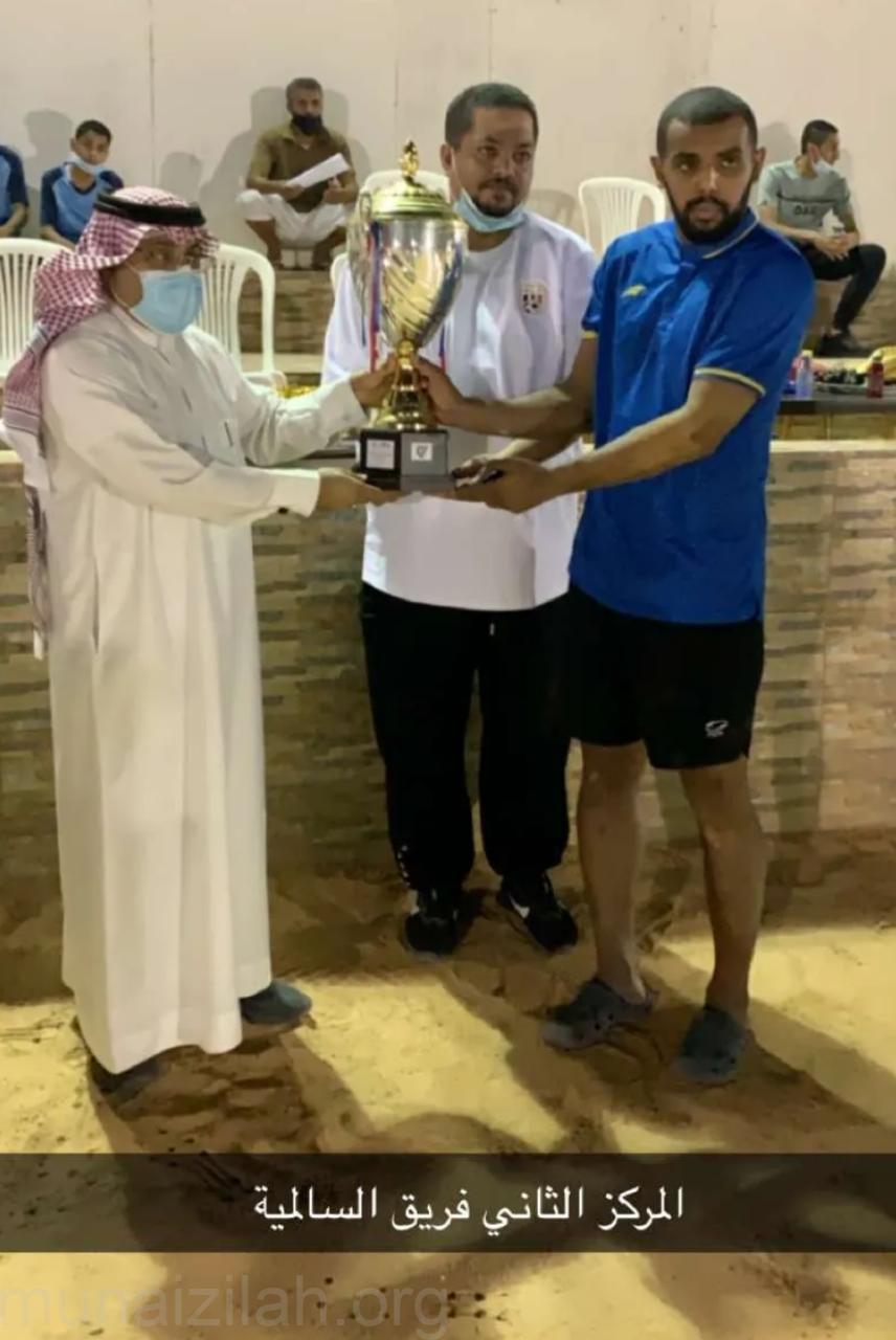 وبعد نهاية المبارة تم توزيع الكؤوس والشهادات والميداليات الجماعية والفردية على الفائزين بمشاركة كل من «السبيعي» وعضو لجنة التنمية الاجتماعية بالجفر «أحمد عبدالله الأحمد» ومدير صحيفة المنيزلة نيوز الالكترونية «جاسم محمد الدليم» والناشط الاجتماعي «توفيق ناصر بوشاجع» و الناشط الرياضي «صالح ابراهيم الرويشد», بمتابعة وتنسيق رئيس مركز النشاط الاجتماعي «أحمد حسين البراهيم» والمشرف الرياضي بالمركز «بدر عيسى الاحمد» و إدارة وأعضاء المركز والقائمين على البطولة الرمضانية.