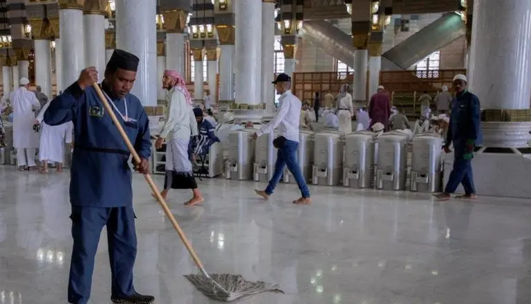 كثفت وكالة شؤون المسجد النبوي، ممثلة في وكالة الخدمات وتحقيق الوقاية البيئية، من خلال إدارة التطهير من جهودها، وذلك تزامنًا مع وصول الحجاج والزائرين للمسجد النبوي وتجهيزه لهم ليؤدوا عبادتهم بكل يسر وسهولة.