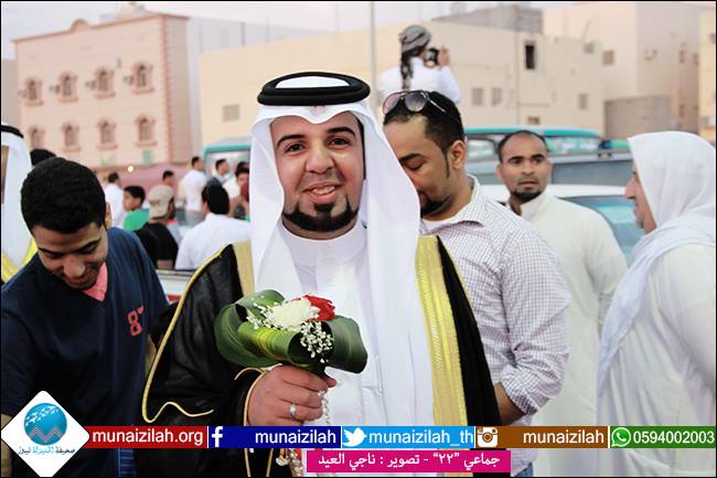 وعند وصولهم استقبلوهم الأهالي بالحفاوة ( والزفة ) وبترتيب من لجنة شؤون المتزوجين حتى دخولهم الموقع والتقاط الصور مع أهاليهم وأقاربهم وأصدقائهم لتُرفع بعد ذلك جلستهم مع أذن صلاة المغرب ، يُذكر أن العمل