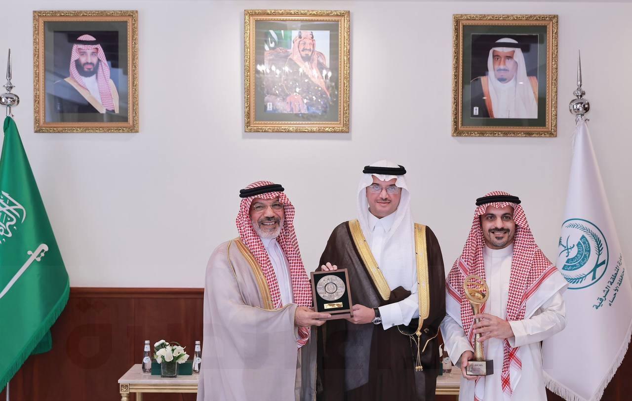 كرّم صاحب السمو الملكي الأمير سعود بن طلال بن بدر، محافظ الأحساء ، بمقر المحافظة، اليوم “الإثنين” ، الفائزين بجوائز الدورة السادسة عشر لمهرجان الخليج للإذاعة والتلفزيون الذي انعقد في مملكة البحرين الشقيقة، من أبطال مسلسل “خيوط المعازيب”، وذلك بحضور رئيس جمعية الثقافة والفنون بالأحساء الأستاذ يوسف الخميس وفريق عمل المسلسل.