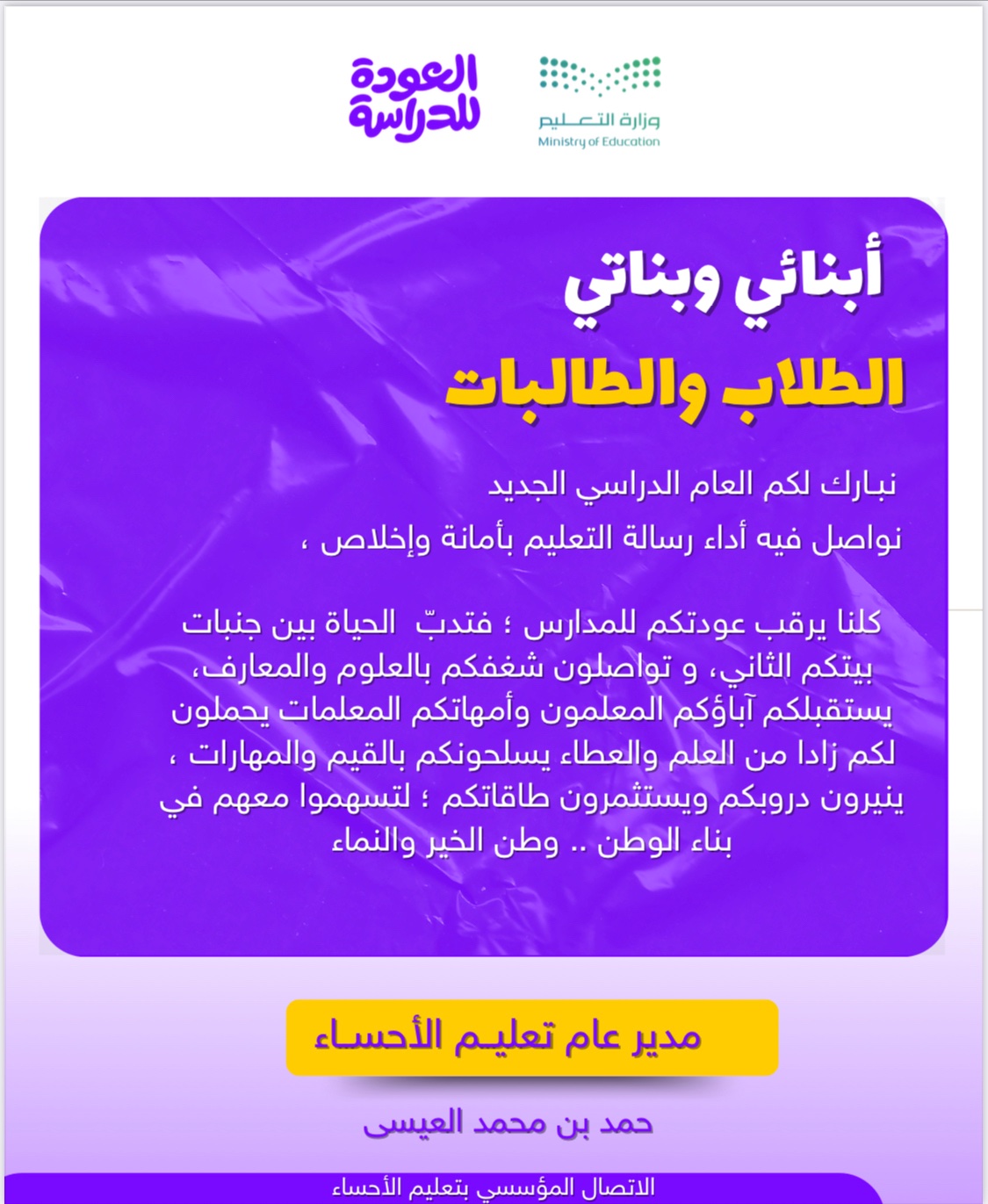 عين على الإحساء > مدير عام #تعليم_الأحساء: كلنا يرقب عودتكم للمدارس