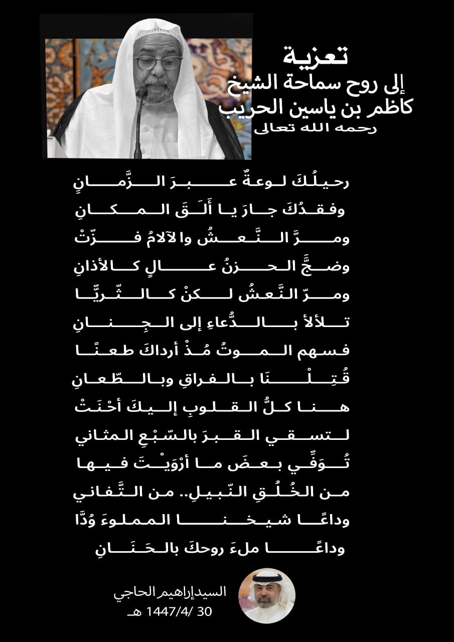 - 2025-10-24 تفاصيل عزاء الفقيد العلامة الشيخ كاظم الحريب ليومي الجمعة والسبت بالمنيزلة