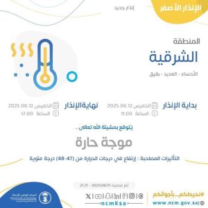 - 2025-12-13 بدءً من الغد وحتى الخميس … تقلبات جوية وأمطار متوسطة إلى غزيرة على الأحساء وأجزاء من الشرقية